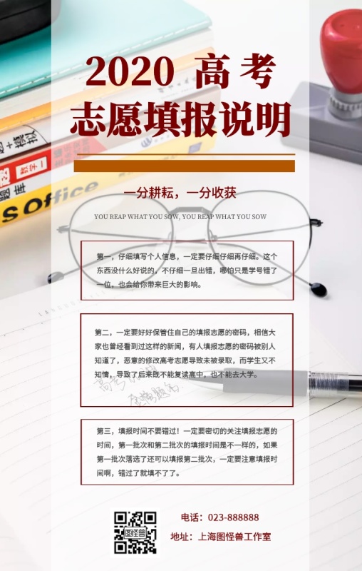 高考志愿填报说明考试大学课桌简约手机海报