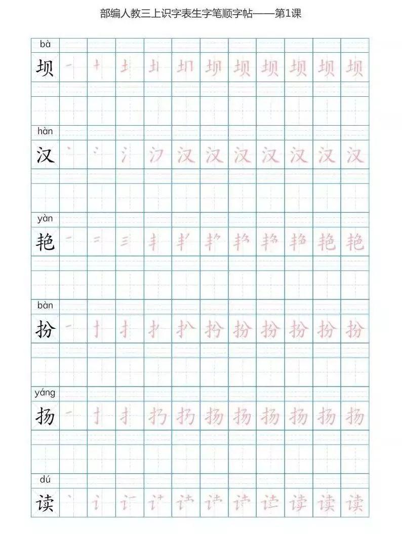 部编版三年级上册生字笔顺字帖,快收藏!(可