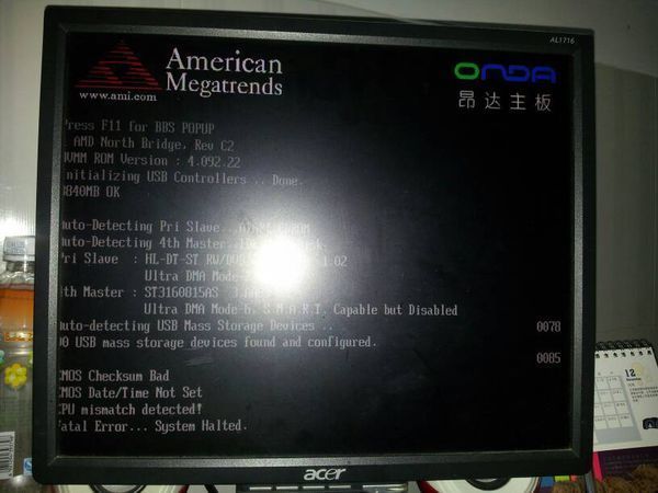 光驱位加装了块硬盘,电脑卡在开机画面了