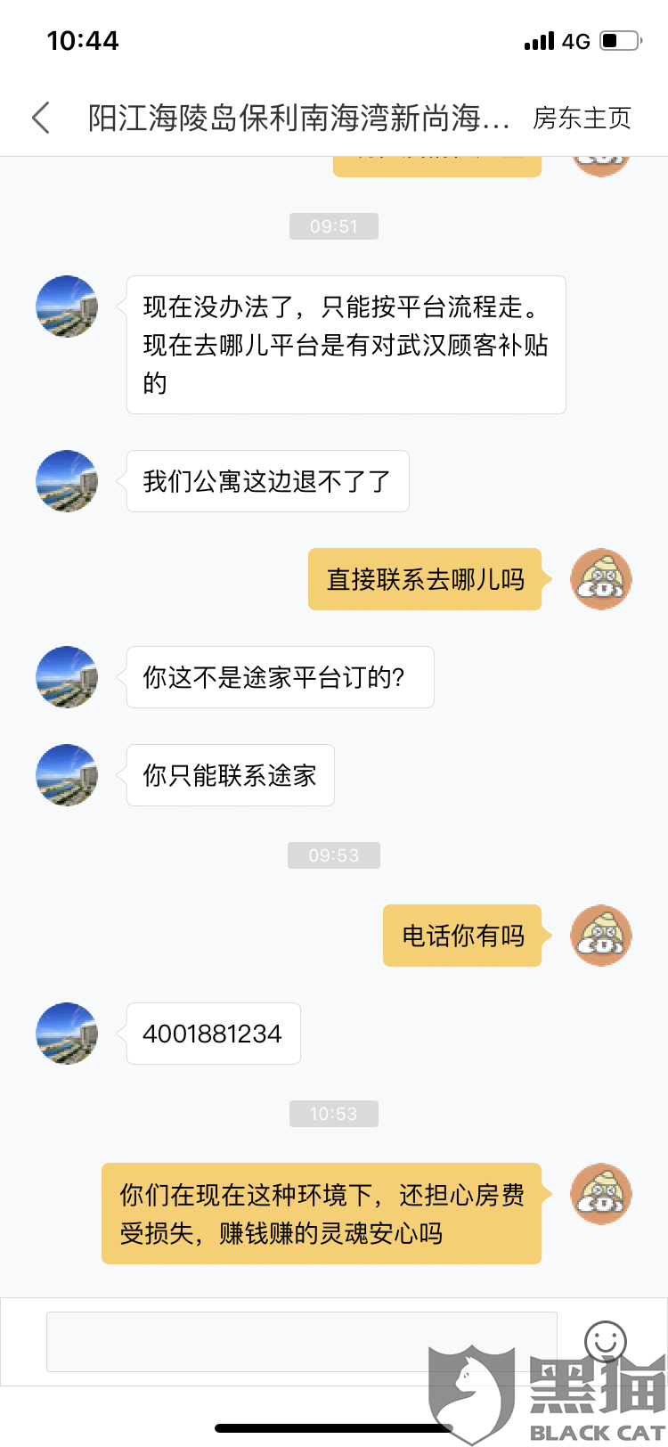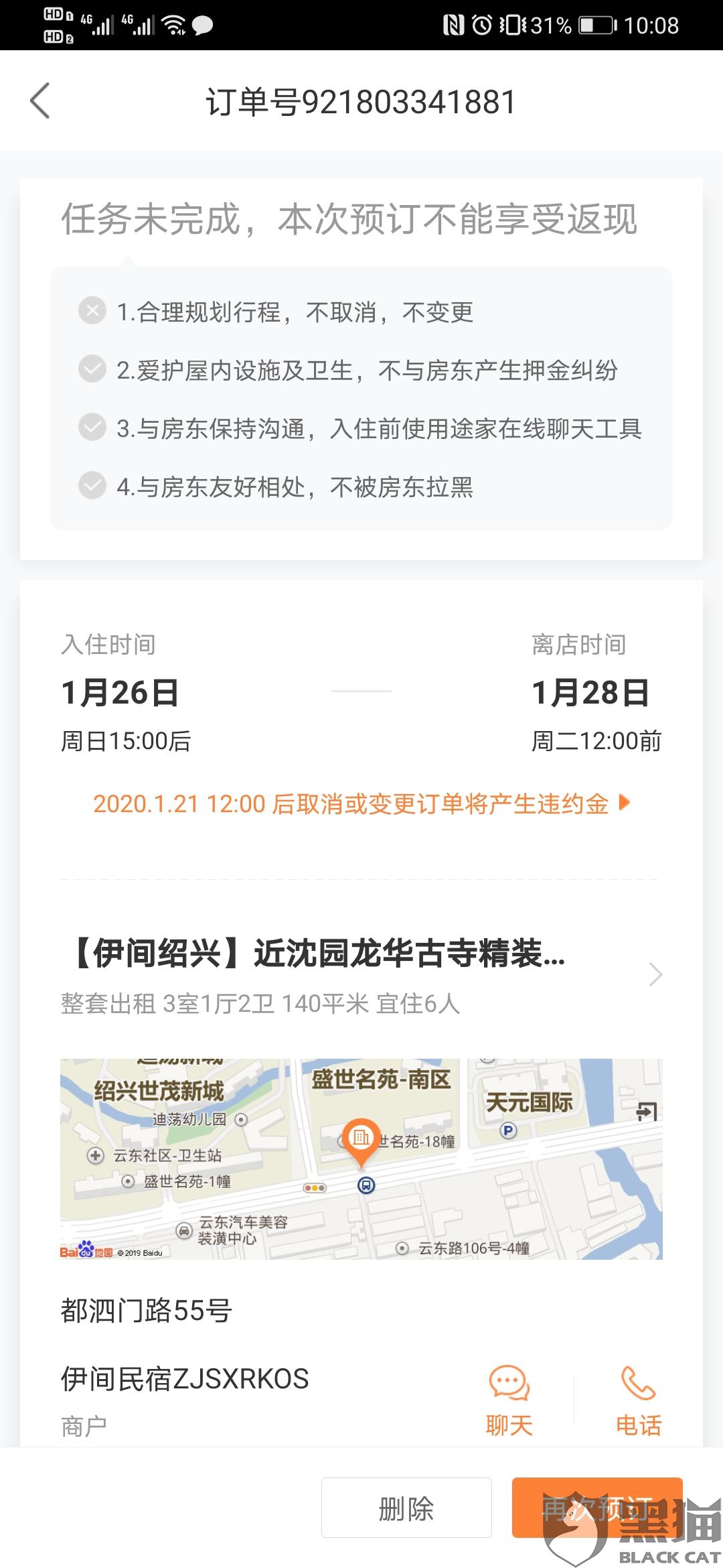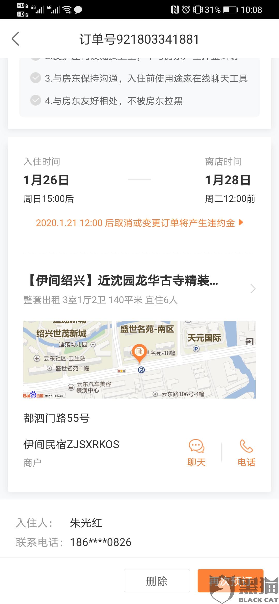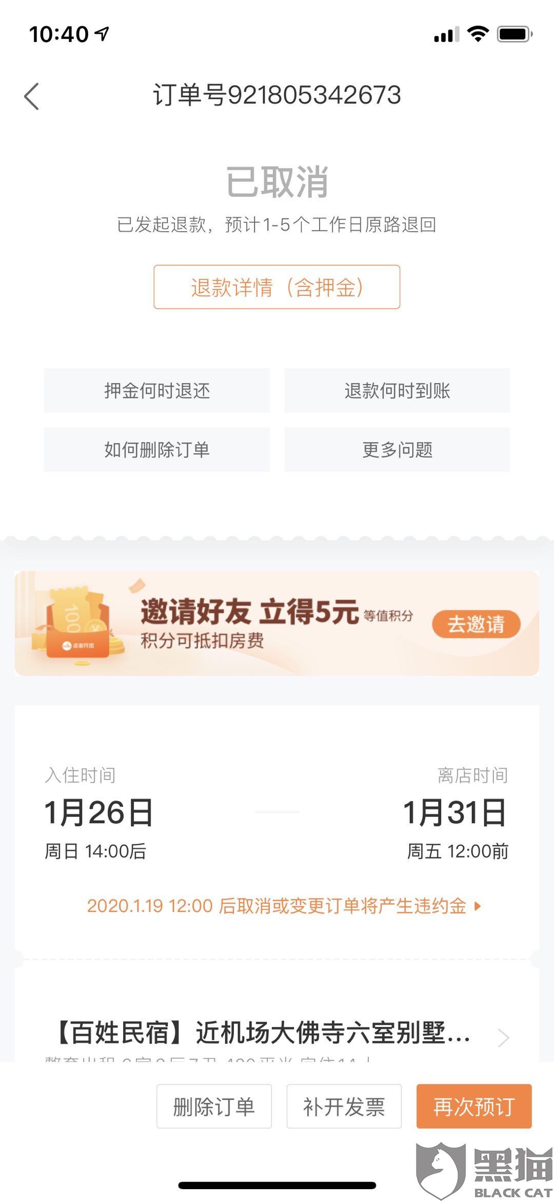 黑猫投诉:途家民宿客服用时3天解决了消费