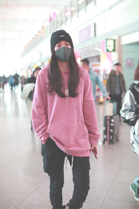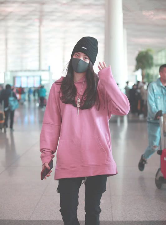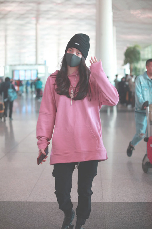 欧阳娜娜化身甜酷女孩,粉色卫衣配工装裤,