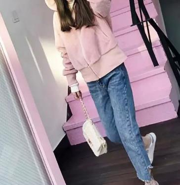 粉色卫衣配什么裤子女配黑色裤子吗这样
