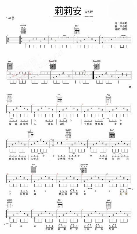 求宋冬野的莉莉安单音版吉他谱_360问答