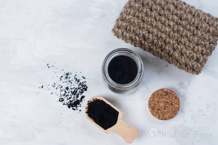 自制的糖和研磨咖啡做的磨砂。水疗, 美容
