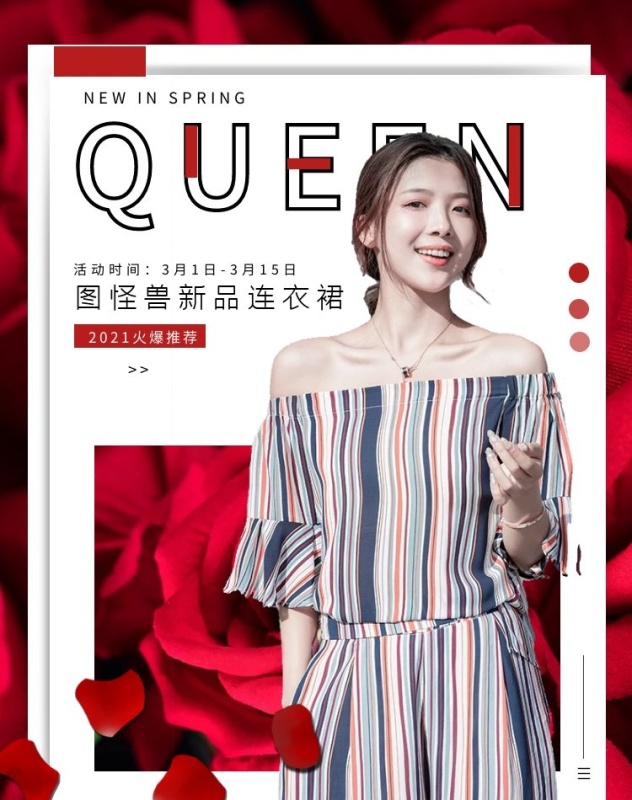 电商红色唯美女装服装竖版海报