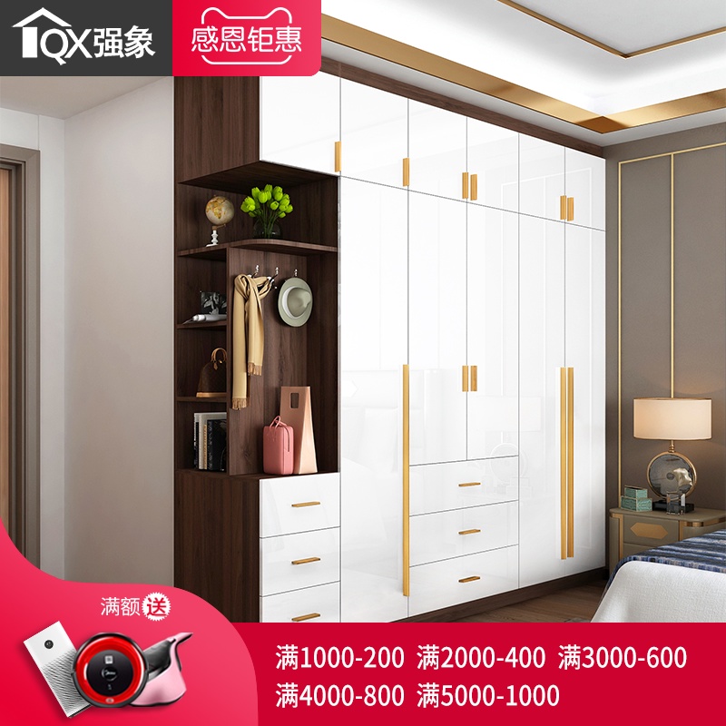 意式极简后现代轻奢衣柜简约四五六门平开门大衣柜多功能衣橱定制