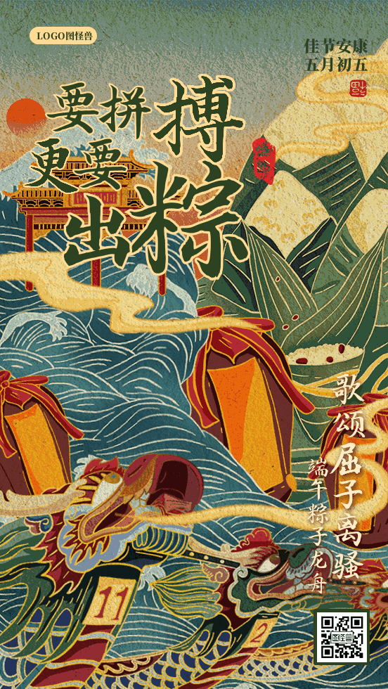 新国风端午节赛龙舟吃粽子动态GIF模板