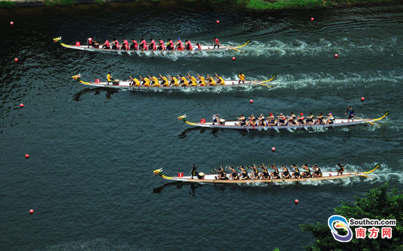 深圳最大规模的端午龙舟赛--观澜河龙舟赛展开决赛