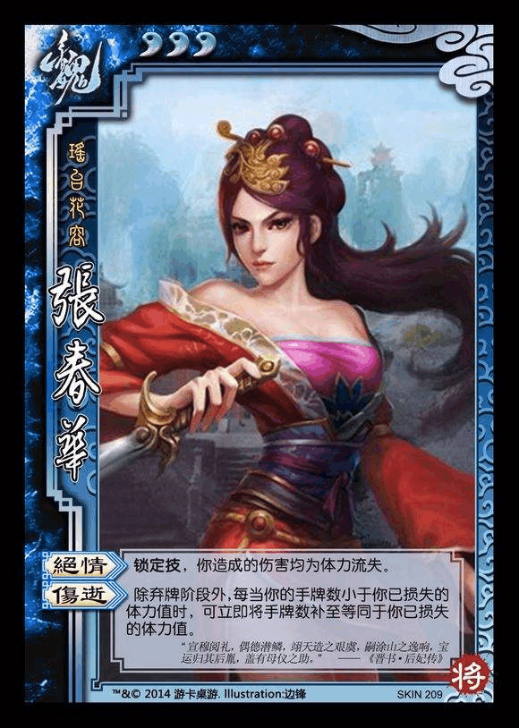 三国杀游戏的武将皮肤以及台词-张春华