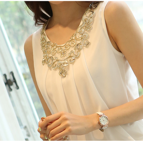 西甸 领口镶钻无袖背心雪纺衫白 - 聚美优品