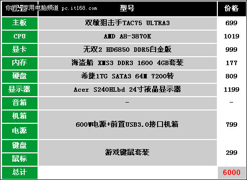 无畏2012 6000元DX11游戏配置推荐_台式机
