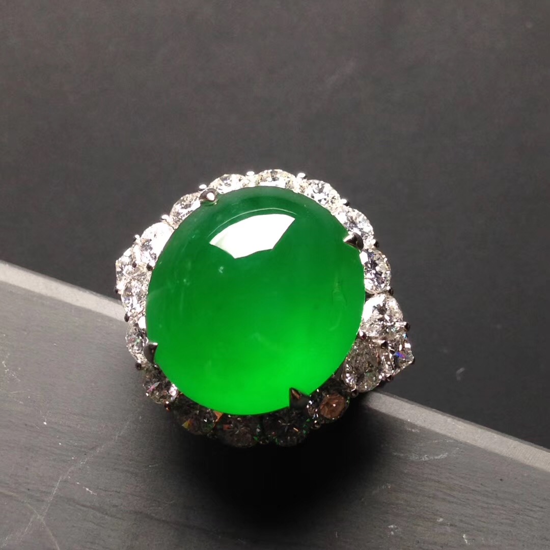 缅甸翡翠阳绿蛋面戒指-翡翠戒面加工方法,帝王绿翡翠戒指,小翡翠戒指镶嵌图片