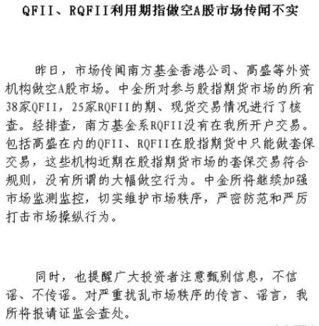 中金所澄清外资做空A股传闻-rqfii,指期货,