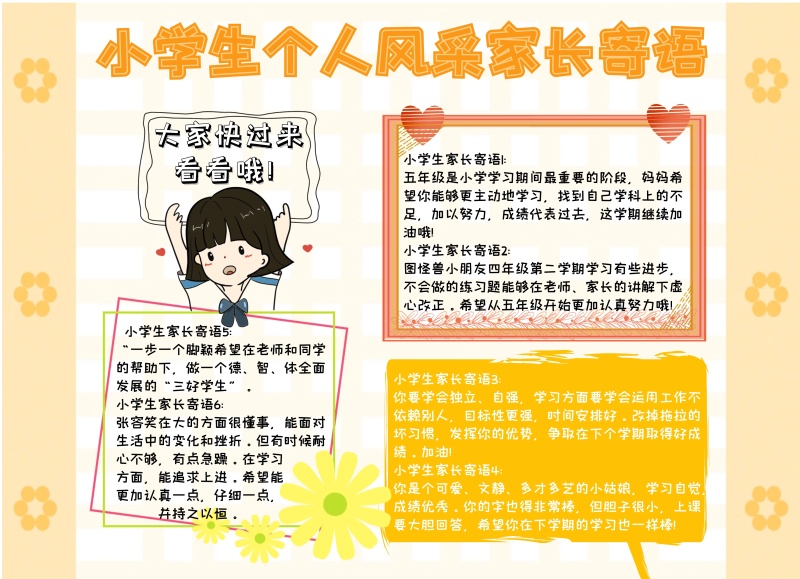 小学生个人风采家长寄语卡通
