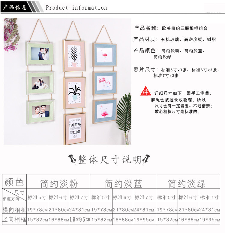 麻绳挂式组合照片墙5寸6寸7寸装饰相框