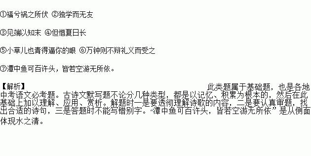 . ⑥ .万钟于我何加焉?⑦中借鱼儿自由游