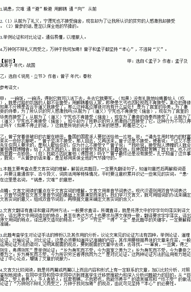 阅读文言文.回答问题鱼我所欲也一箪食.一