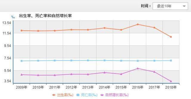 中国人口自然增长率十年变迁,2018年首次跌破千分之四-天天快报