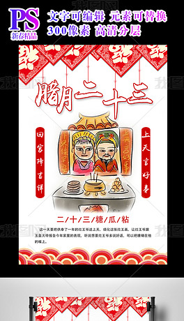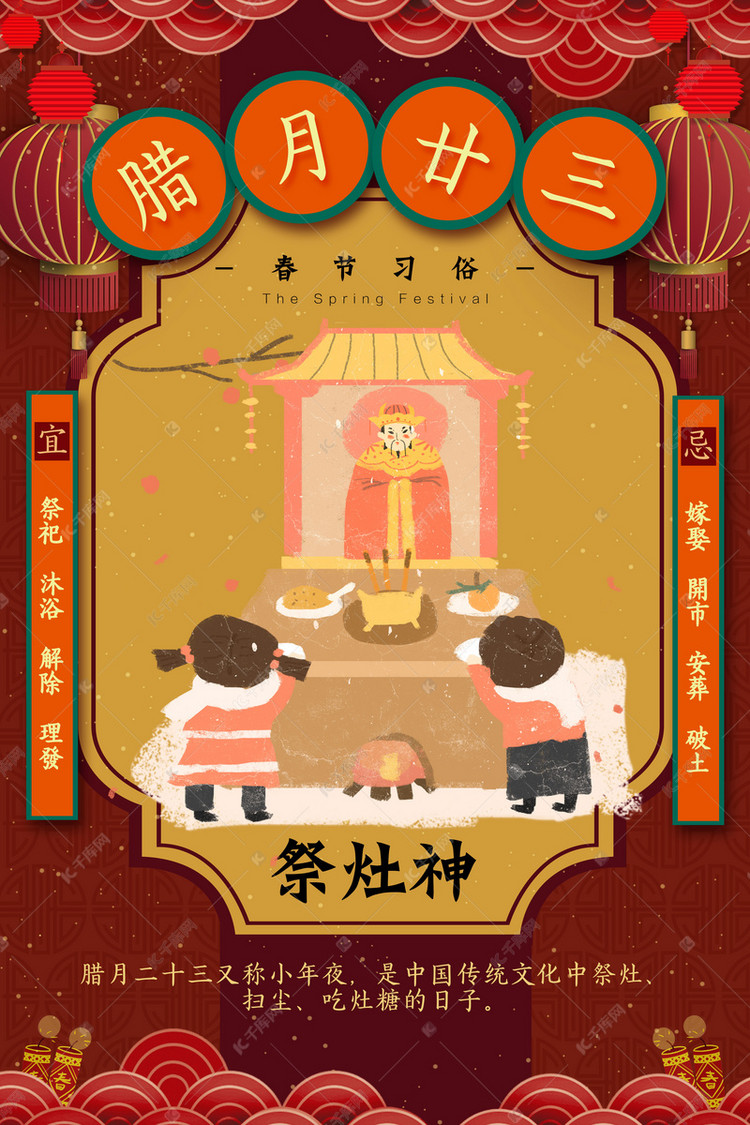 创意春节习俗腊月二十三新年中国风海报