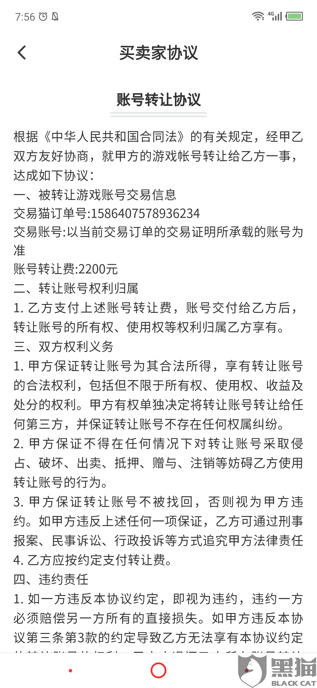 黑猫投诉:在交易猫买号被骗,卖家强行取消