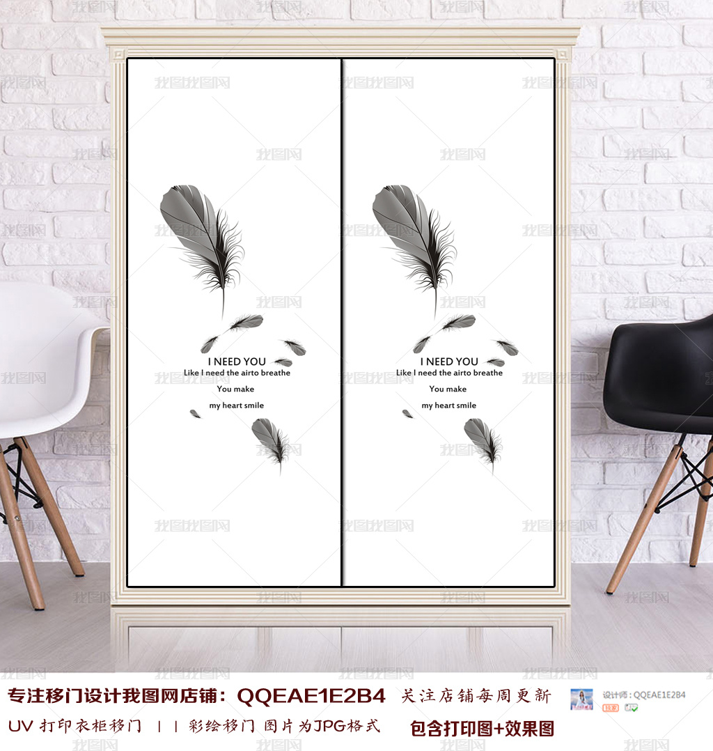 UV打印羽毛英文字母衣柜移门图片背景柜子