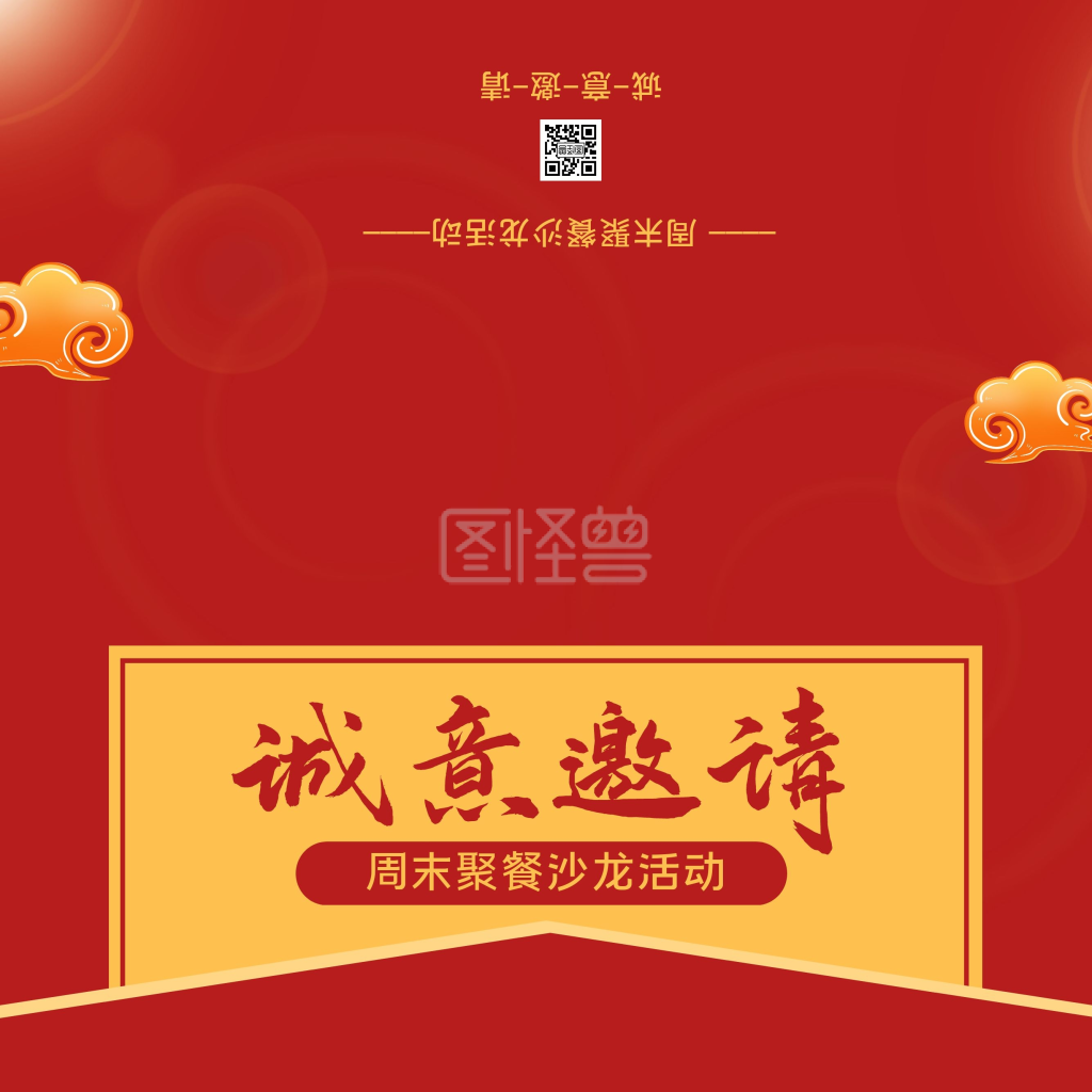 红黄光效简约周末聚餐沙龙活动邀请函