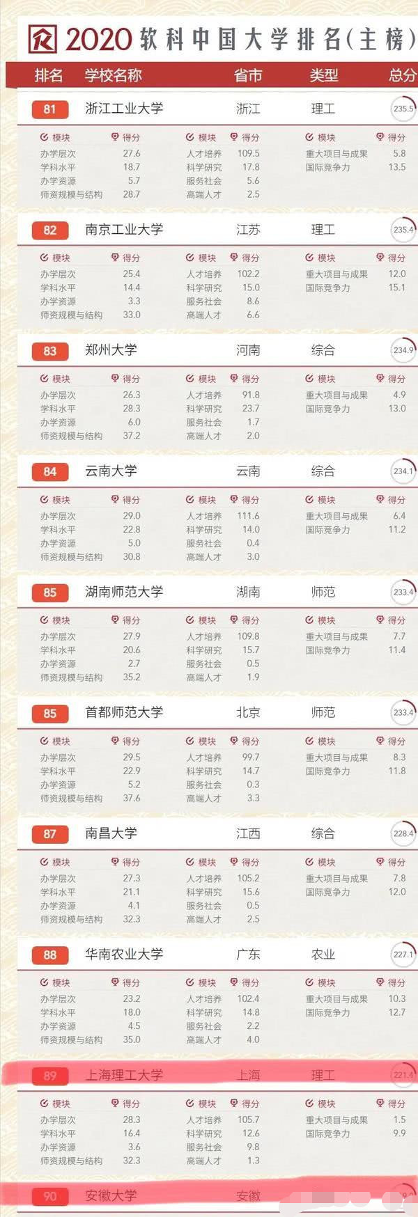 中国大学排名:上海理工大学碾压排名第