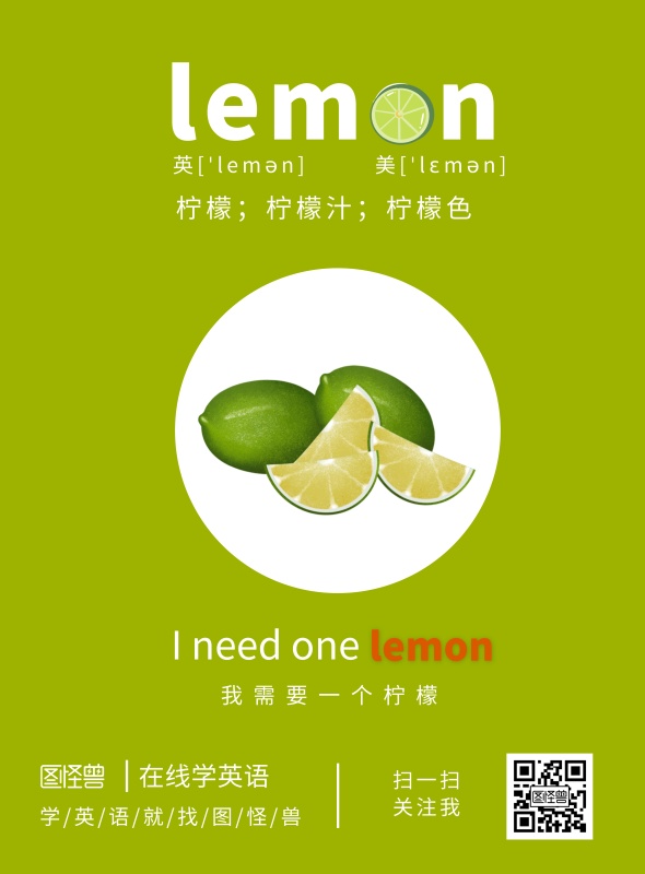 幼儿英语单词柠檬介绍在线制作竖版海报