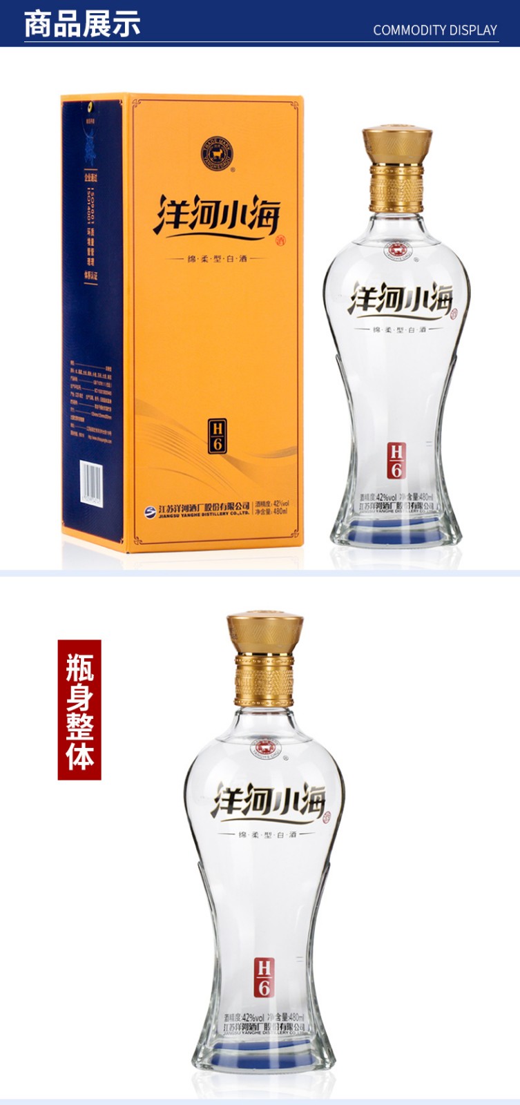 洋河小海酒 H6 42度 480ml 绵柔型洋河白酒婚宴宴请纯粮食白酒送礼酒水 42度整箱*6瓶装