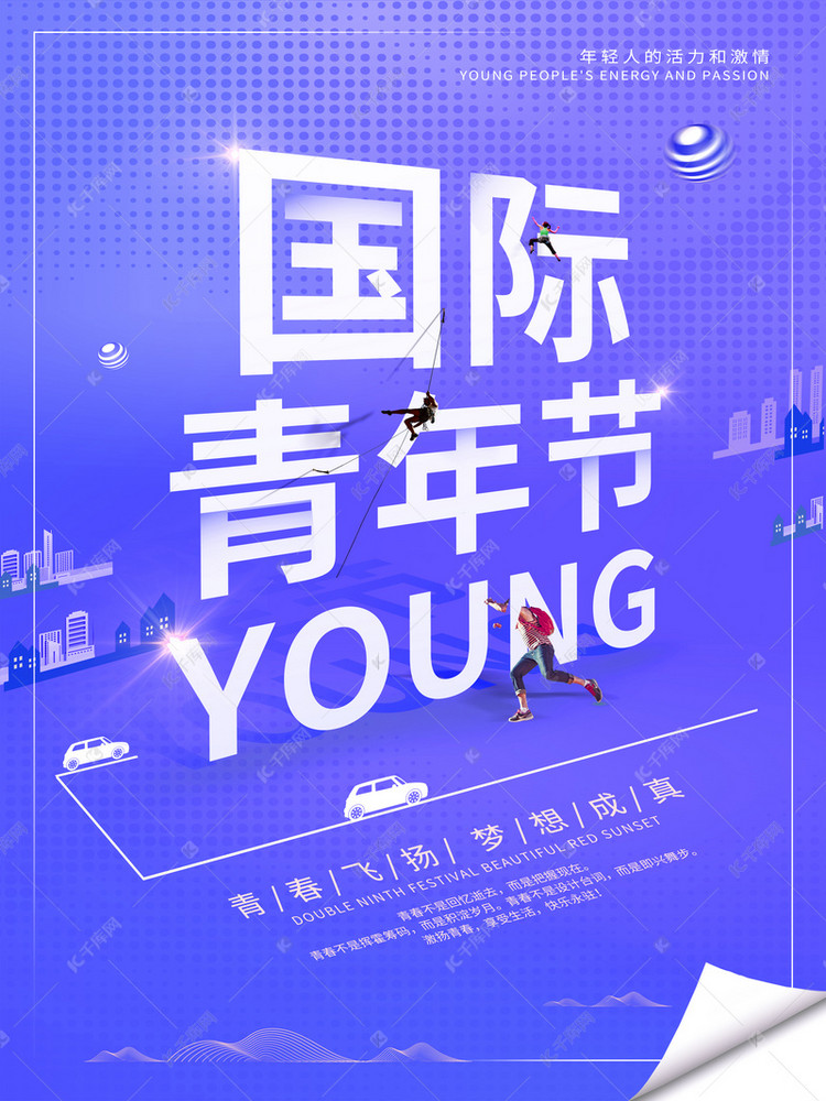 创意简约蓝紫色国际青年节青春梦想公益海报
