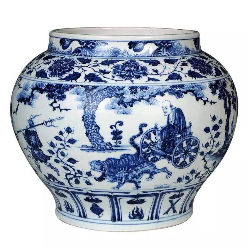 青花瓷鬼谷子下山人物故事大罐古玩收藏 -