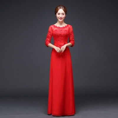 新娘晚礼服穿什么颜色的 蕾丝旗袍一字肩