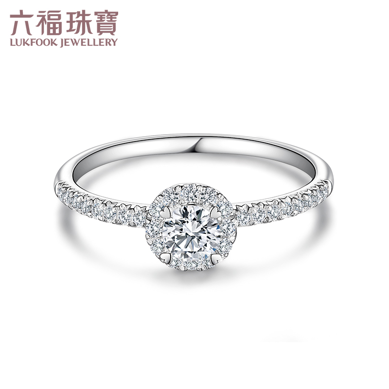 六福珠宝爱很美圆满钻石戒指K金群镶钻戒