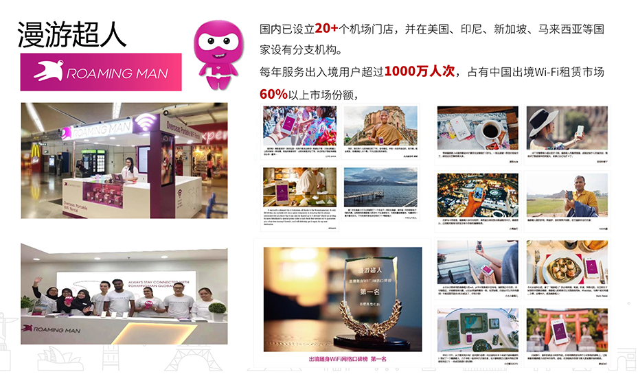 简介:漫游超人 ,Roamingman ,服务类型为:出国通讯 、出境游业务 。一年多时间占全球市场,遥遥领先于其他竞争对