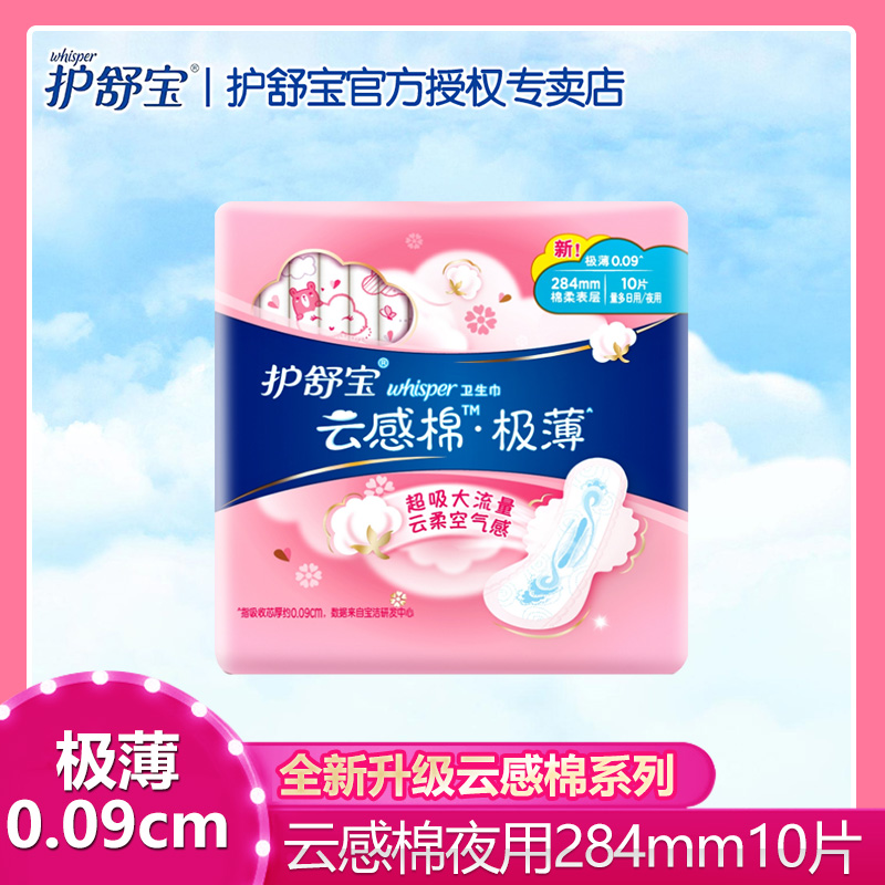 护舒宝卫生巾女云感棉量多日用\/夜用棉柔极薄284mm10片姨妈巾