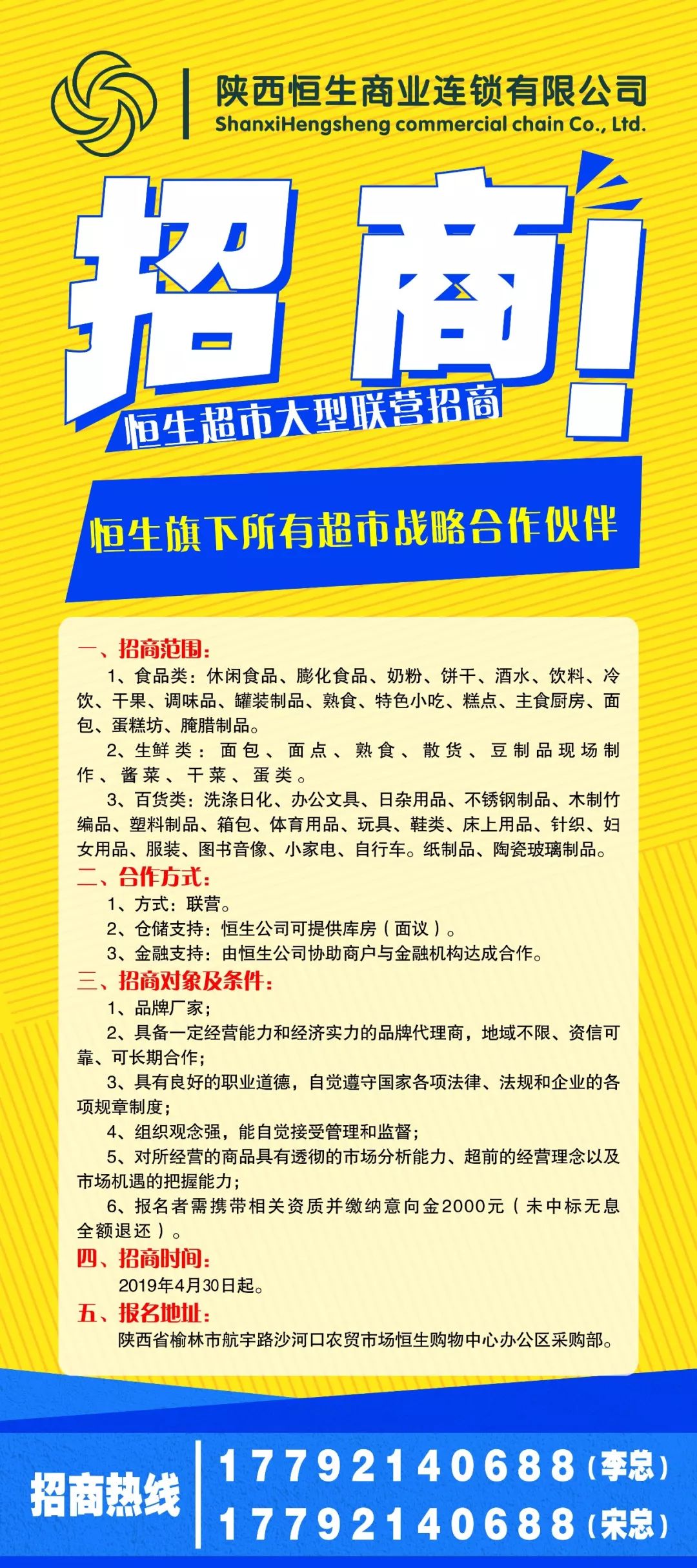 隆重招商丨恒生超市现面向社会全面招募战略合作伙伴!