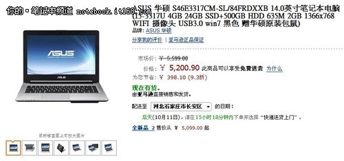 轻薄便携笔记本 华硕S46E337CB抢购-科技