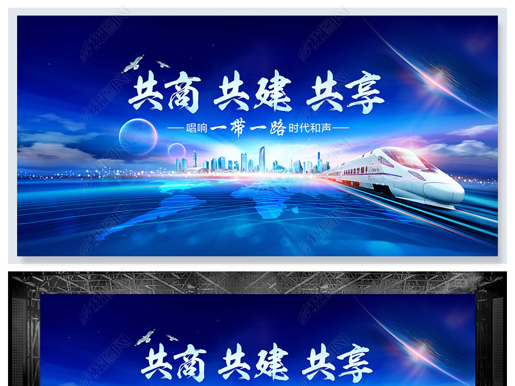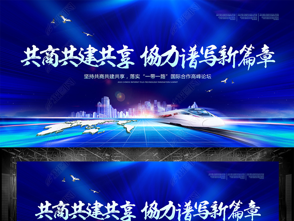 共商共建共享一带一路蓝色大气背景