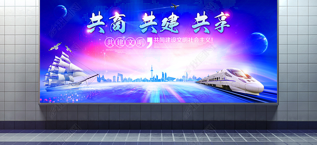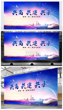 蓝色共商共建共享一带一路文化展板