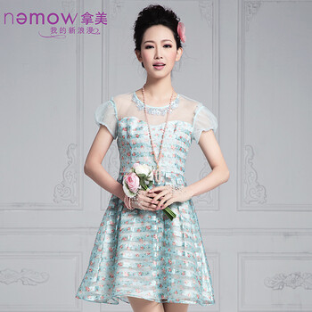 拿美南梦 条纹印花连衣裙A4K184 浅蓝20 S