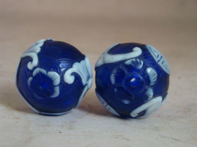 清乾隆 蓝套白料喜鹊登梅图小天球瓶