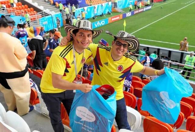 日本球迷赛后收拾球场垃圾被赞别国球迷