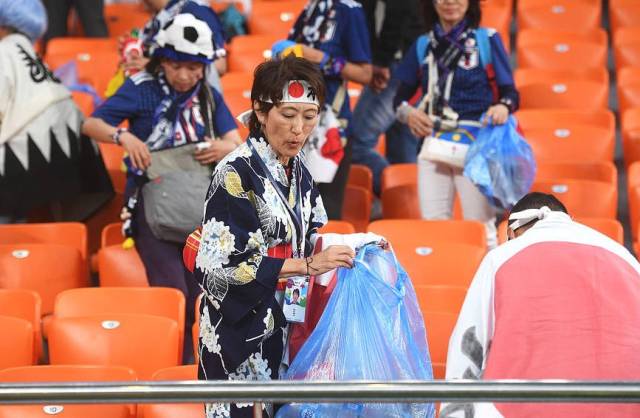 日球迷赛后捡垃圾:日本人爱干净的习惯