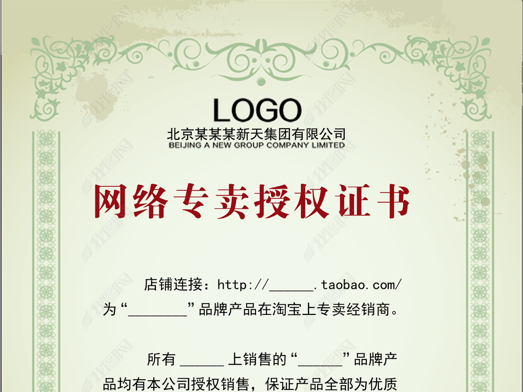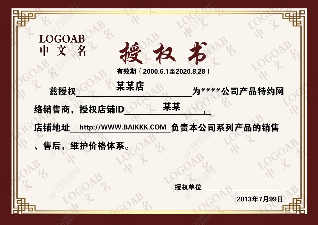 淘宝品牌授权书素材模板免费下载_psd格式