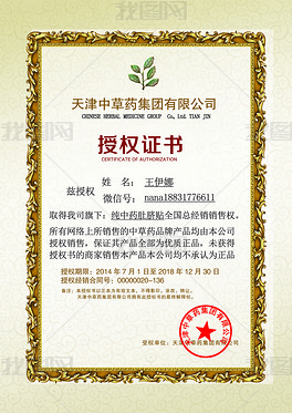 微商淘宝品牌授权证书企业代理竖版授权书
