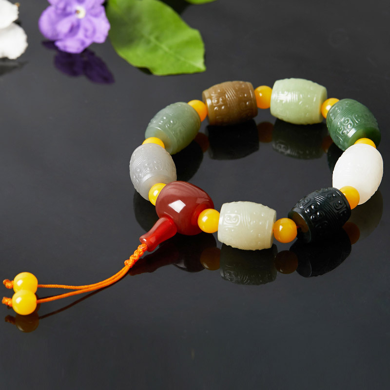 玉真了和田玉多宝五彩精雕玉石手串