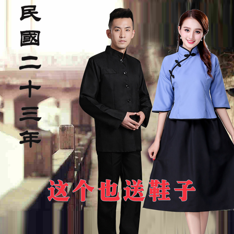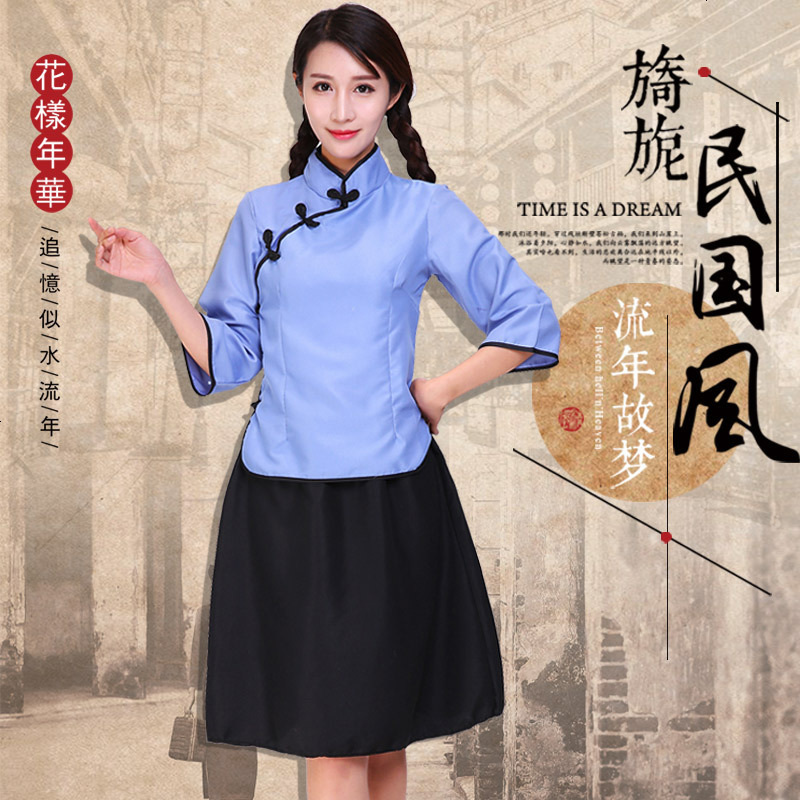 五四青年装女装中山装男装民国风女装民国学生装女古装服装演出服蓝色上衣