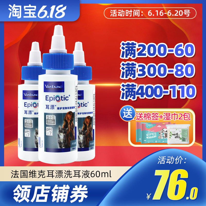 virbac维克耳漂60ml 犬猫洗耳水耳道清洁液