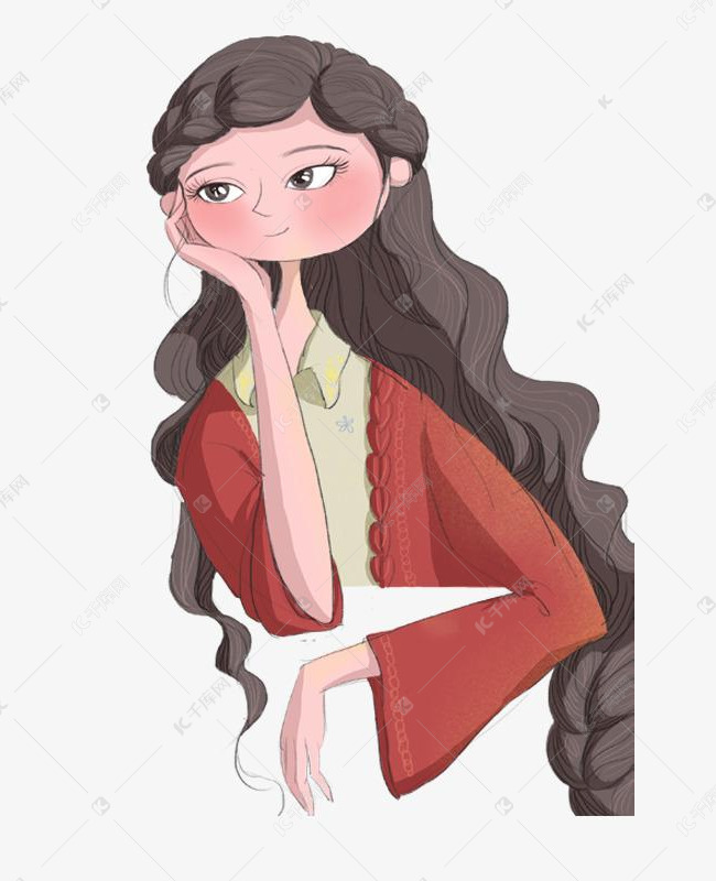 托腮的少女