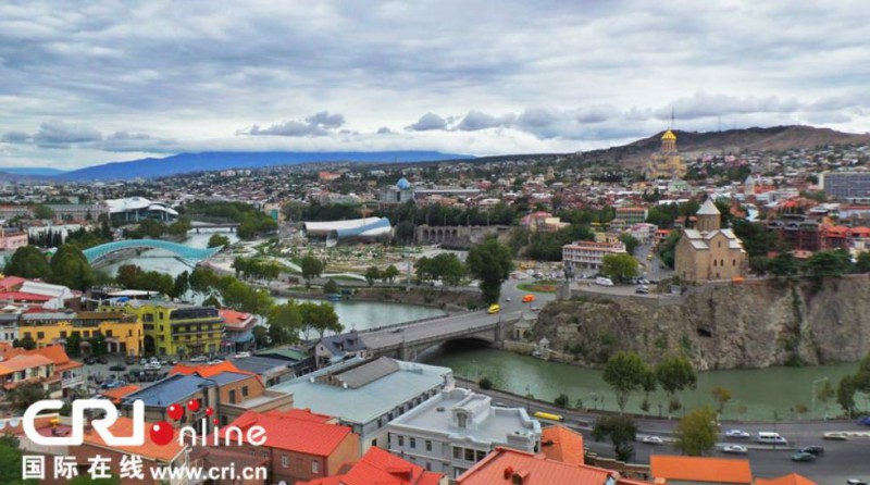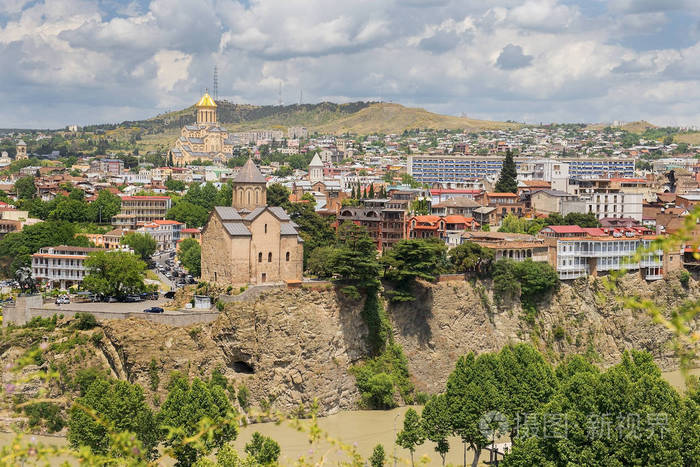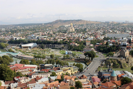 格鲁吉亚首都第比利斯。第比利斯中心鸟瞰图